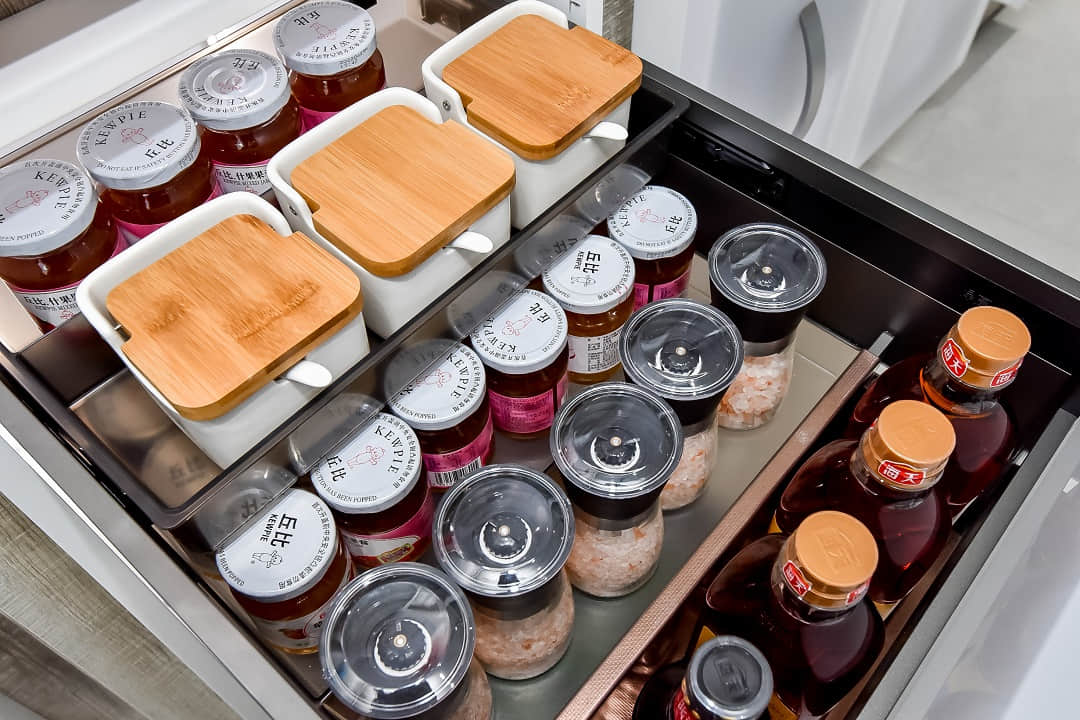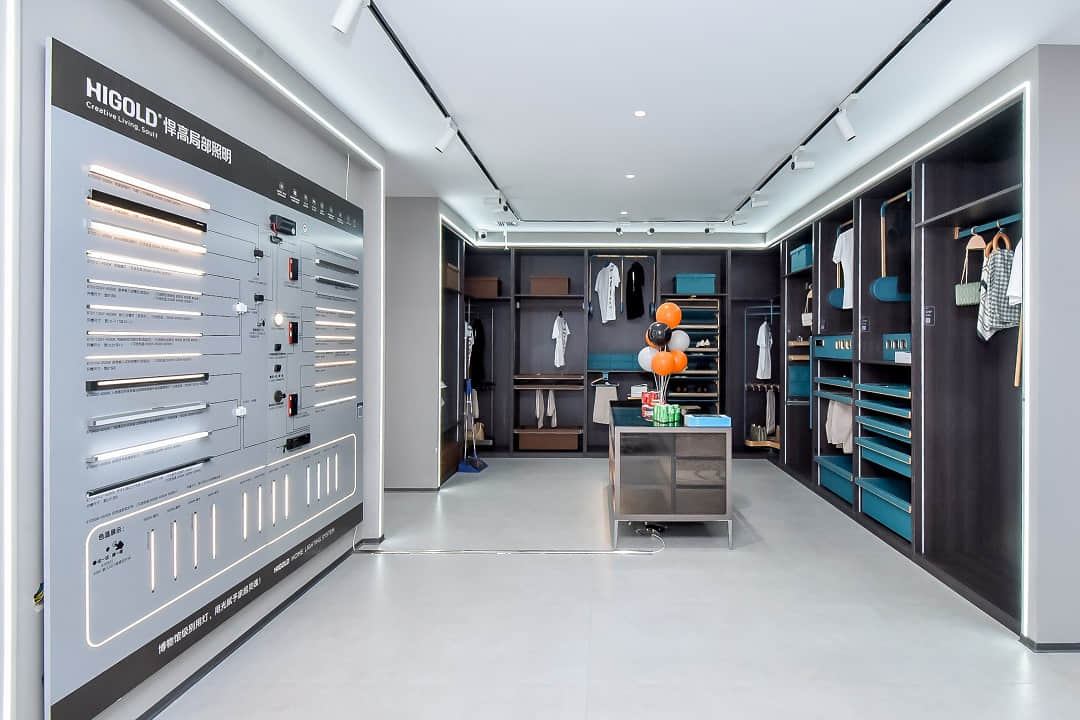悍高哈尔滨旗舰店展厅空间规划为厨房功能五金、衣柜功能五金、基础五金、水槽龙头、装饰五金、智能厨电、卫浴五金区域,消费者到店即可体验一站式的全屋五金解决方案。
