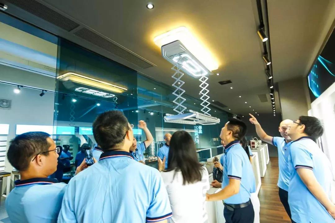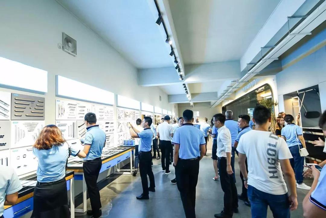 会议结束后,汪总带领橱柜协会一众成员参观悍高展厅,在偌大的展厅中 天堂影院,琳琅满目地摆满了悍高的产品,多样多种的功能五金吸引了橱柜协会成员们的兴趣。