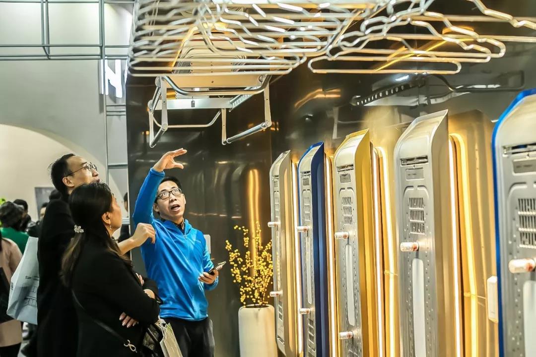 展馆内最亮眼的色彩 天堂影院,来自悍高衣柜功能五金系列,高雅精致的美学配色,明朗简约的工业设计之美,可满足日常衣物收纳所需,吸引着那些追求原创高品质生活的观众。