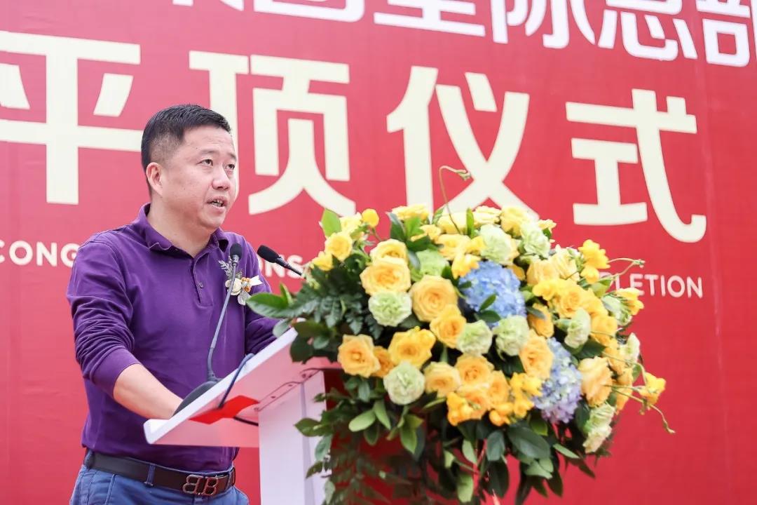 平顶仪式现场,悍高集团董事长欧锦锋为本次活动致辞,欧董表示:悍高集团创立至今17载,一直在家居功能五金,智能五金 在线影视,创意家具方面享誉盛名。