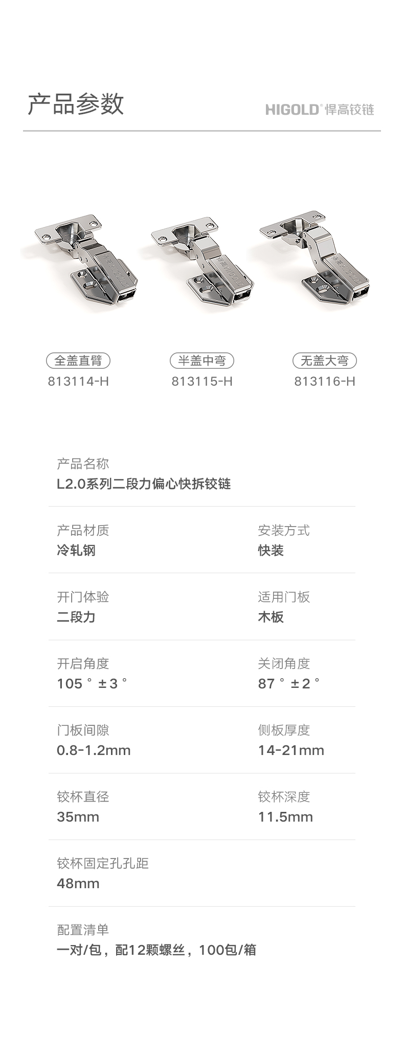 "天堂影院" 悍高L2.0偏心快装铰链